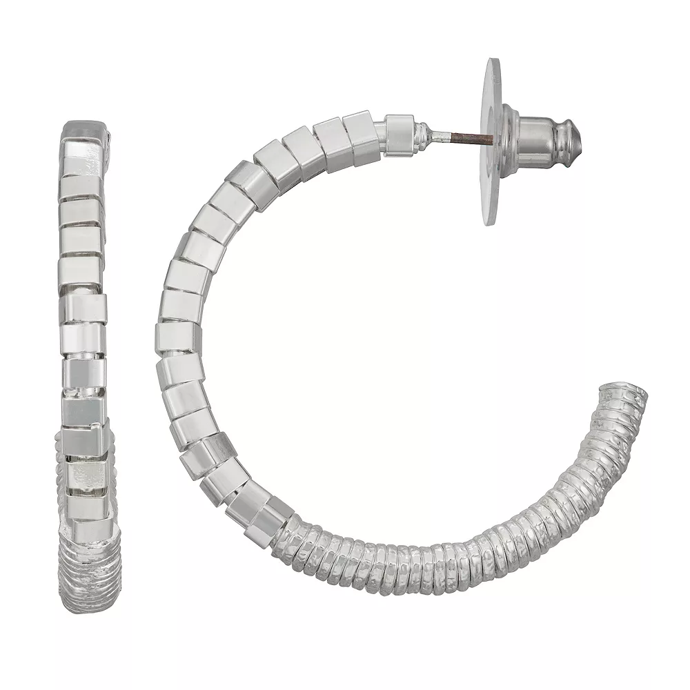 Turn heads in these unique ridged and textured silver tone C-hoop earrings from Napier.