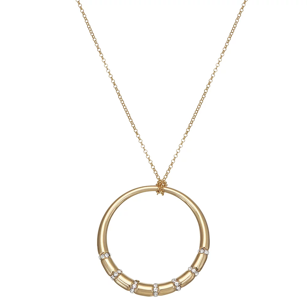 Adorn yourself with this beautiful and classy Nine West gold tone circle pendant necklace.