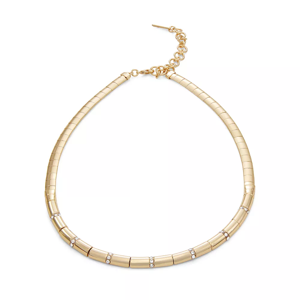 This Nine West Gold Tone Simulated Crystal Pave Necklace is perfect for any look.