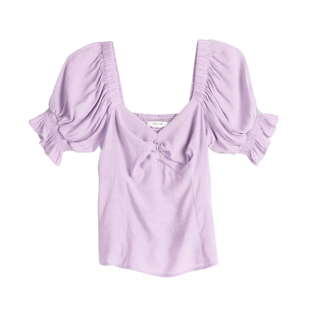 Add a little sweetness to your wardrobe with this women’s twist front puff sleeve top from Nine West.